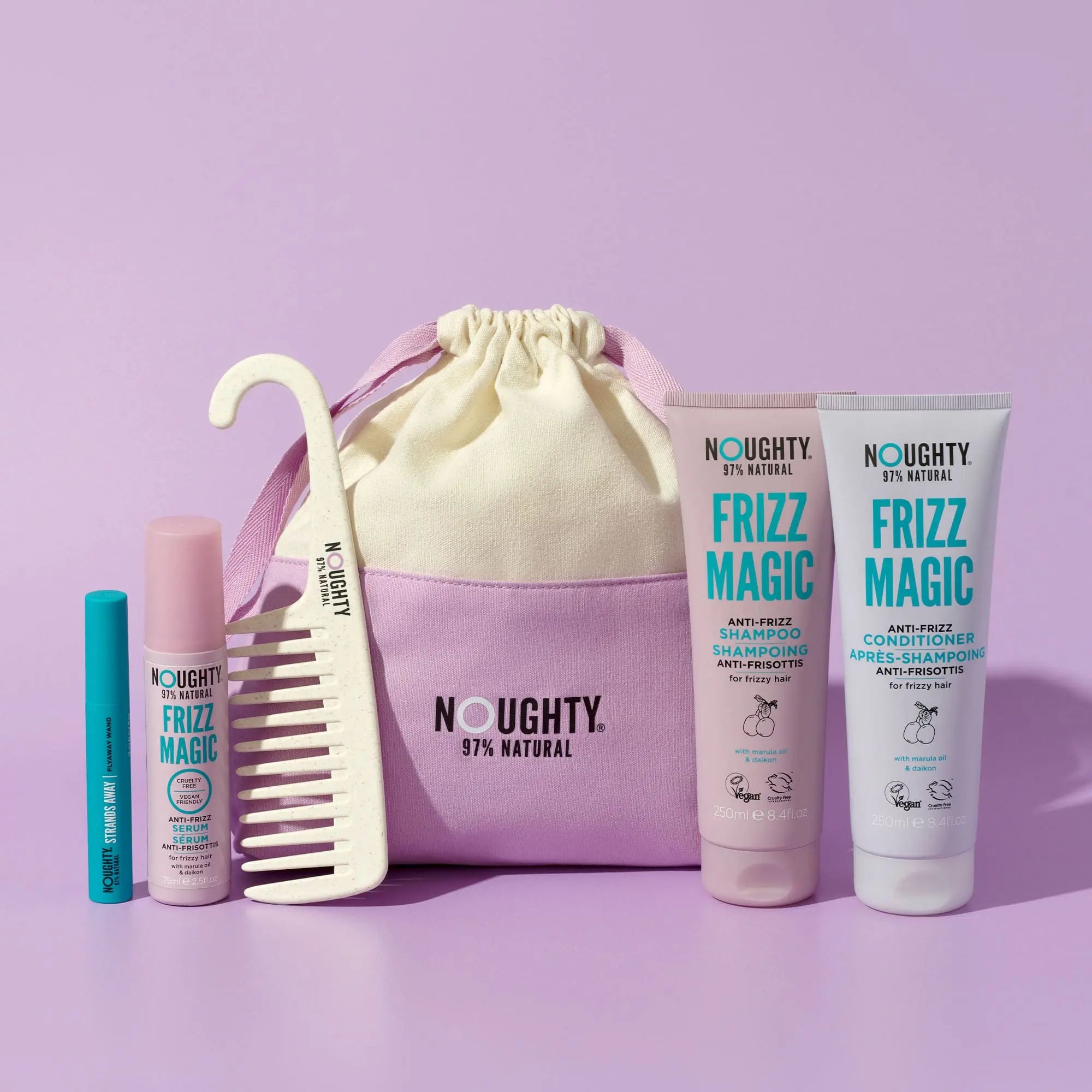 Frizz Magic Anti-Frizz Serum: Protección contra el calor. Aplique sobre el cabello recién lavado y húmedo dispensando una cantidad del tamaño de un guisante en las yemas de los dedos y trabaje el cabello desde las puntas hasta justo por encima de la raíz, agregando producto según sea necesario. Evite aplicar en el cuero cabelludo. Peine el cabello como de costumbre.