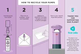 De pompen die met onze flessen worden gebruikt, zijn momenteel niet langs de stoeprand recyclebaar vanwege hun gemengde materiaalconstructie. Dit is een branchebreed probleem en de huidige beschikbare alternatieven voldoen niet aan onze verpakkingsnormen of bieden de best mogelijke ervaring voor jou, onze Noughty-klant.